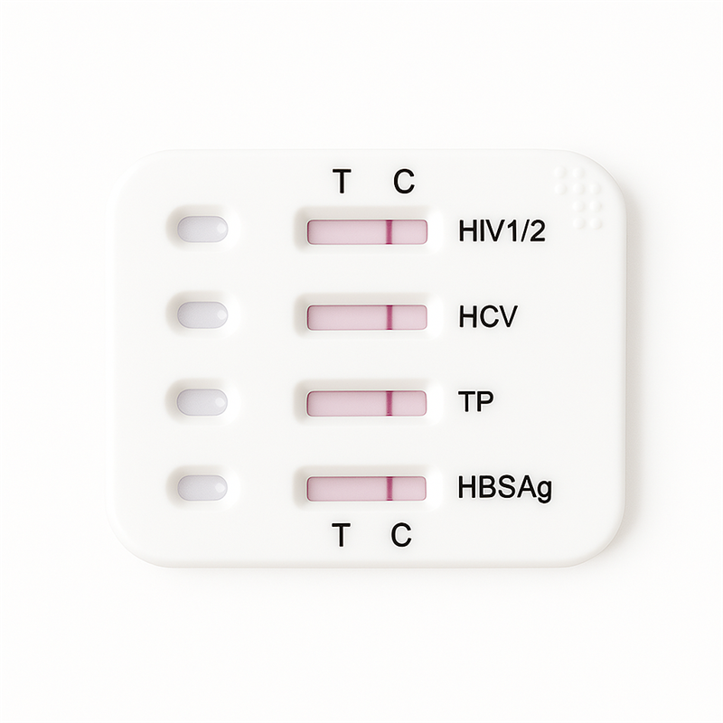Quickly screen for four major infections with our 4-in-1 STD rapid test kit. Detect HIV 1/2, HCV, Syphilis (TP), and Hepatitis B (HBsAg) from a single test card in just 15 minutes. Compact, accurate, and perfect for personal or clinical use.