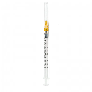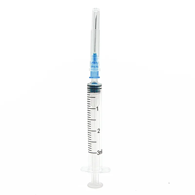 The disposable sterile syringe is a safe, single-use medical tool. It features a transparent barrel with clear scale markings for accurate dosing.
