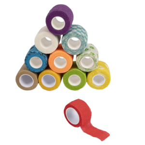 The self-adhesive elastic bandage is a flexible wrap that sticks to itself without the need for clips or pins. It offers reliable compression and support for injured areas, reducing swelling and promoting recovery.